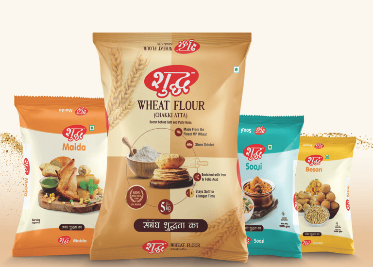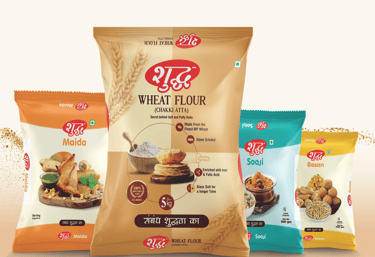 Experience the purity of Shuddh products, bringing you traditionally milled Chakki Atta, Maida, Sooji, and Besan for all your culinary needs.